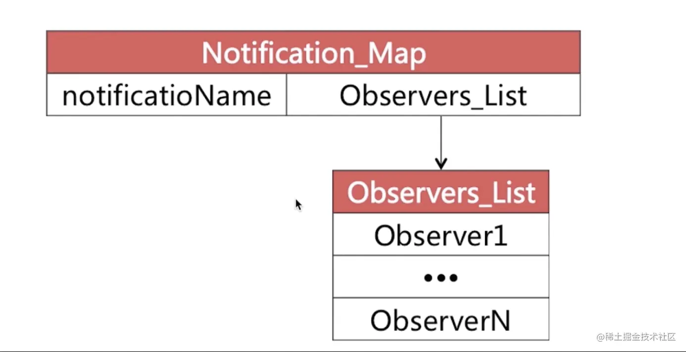 Notification_Map,以notificationName为key,以数组Observers_List为value。