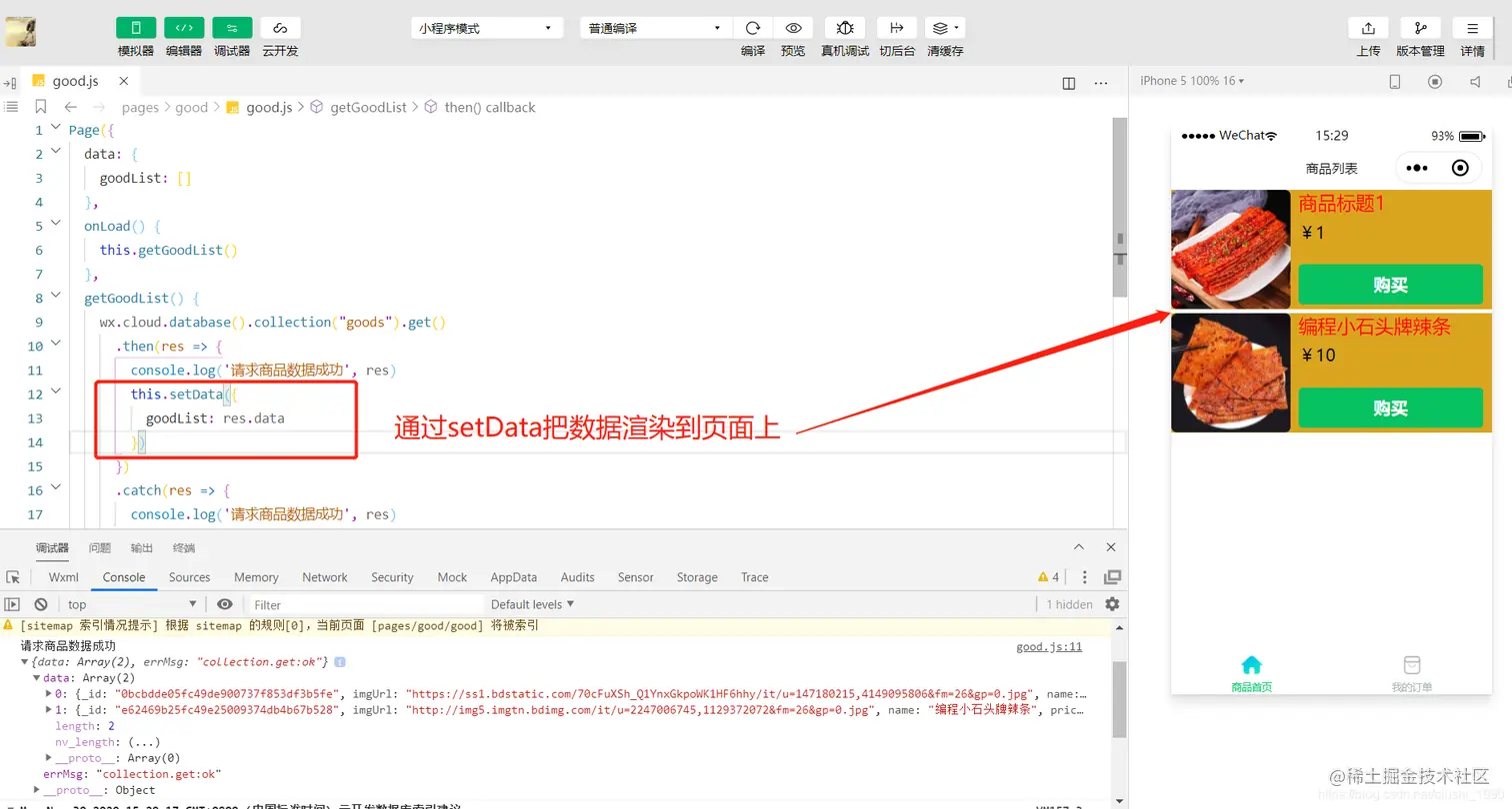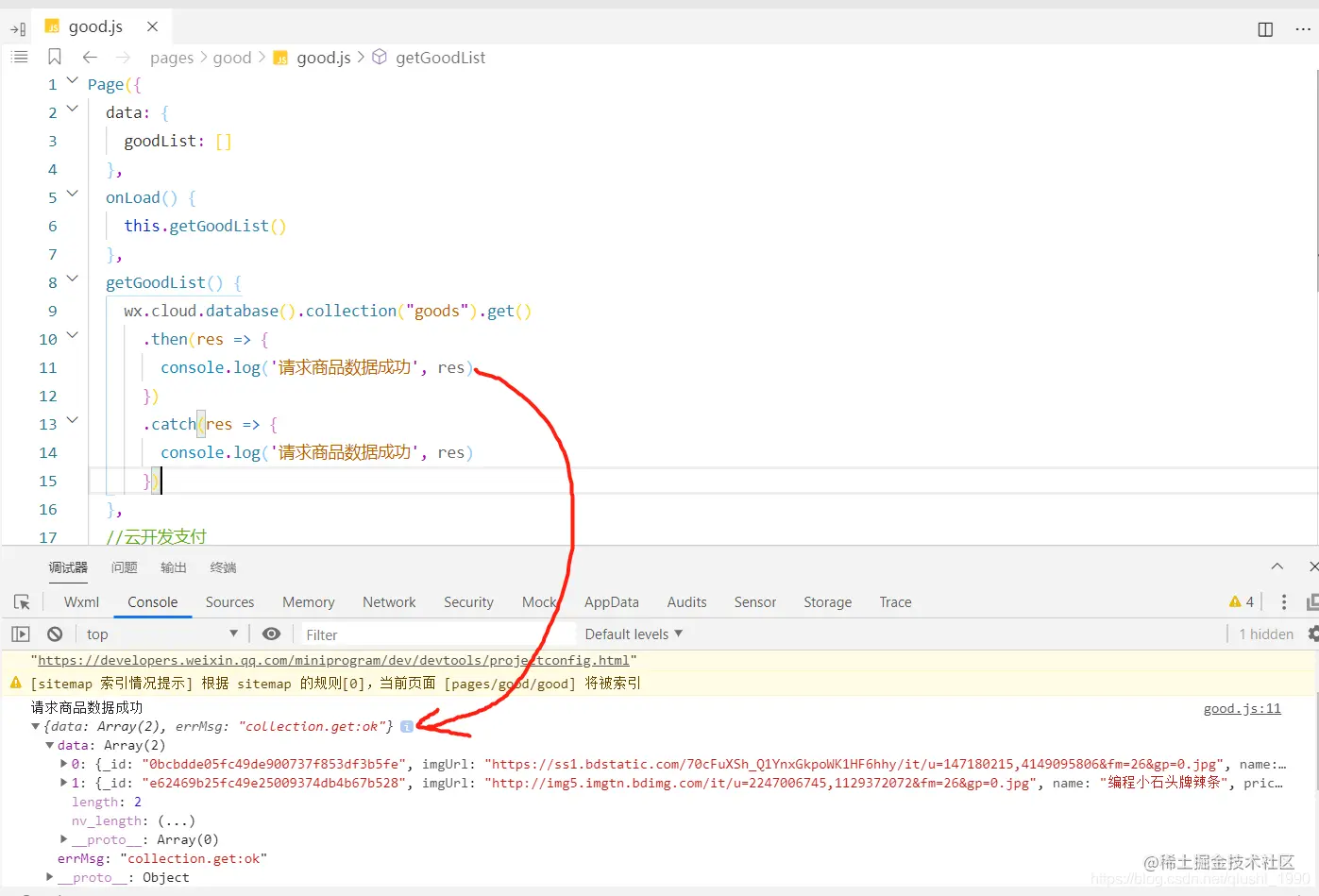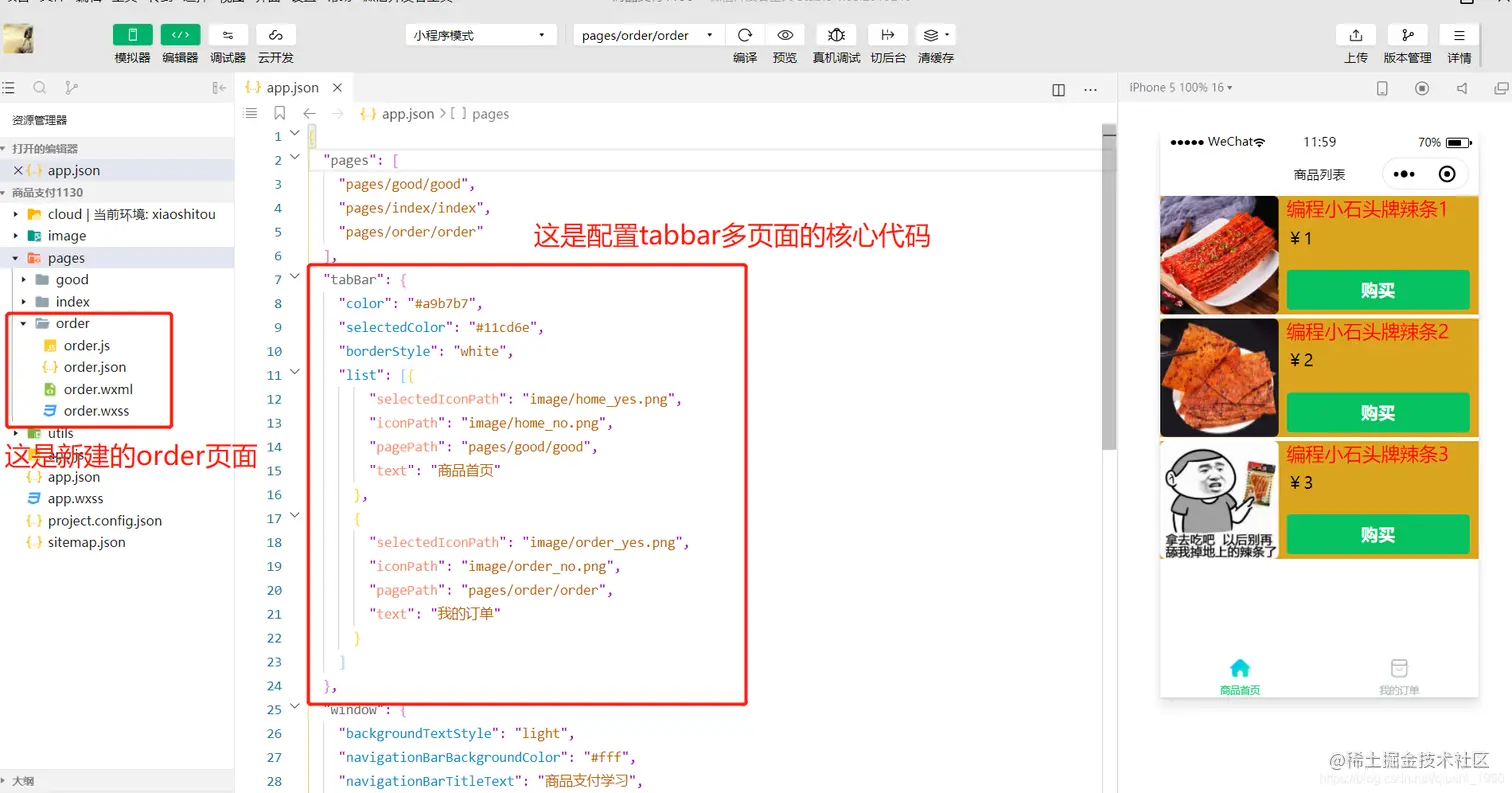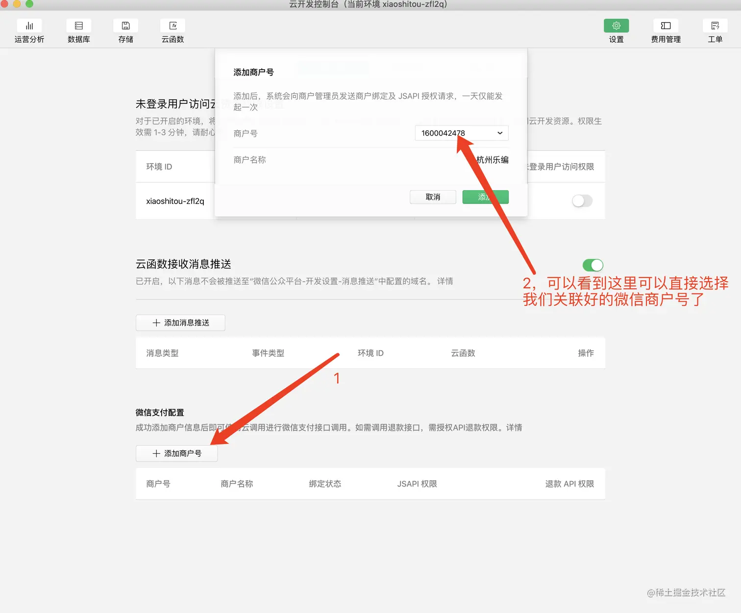 我们上面创建好订单以后,应该在订单创建成功的回调里调起支付。其实支付的代码和我们前面学习基本都一样,唯一变化的就是要把我们新建的订单id传给支付云函数,把订单id作为支付时的单号。
