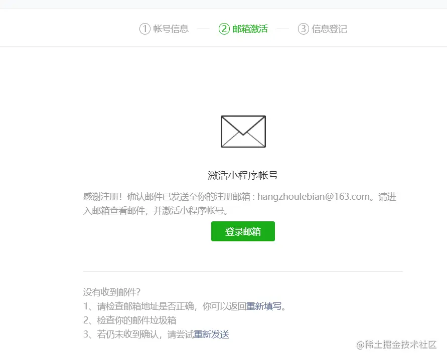 如果邮箱没用过,就会进入下面页面,这个页面用来验证邮箱