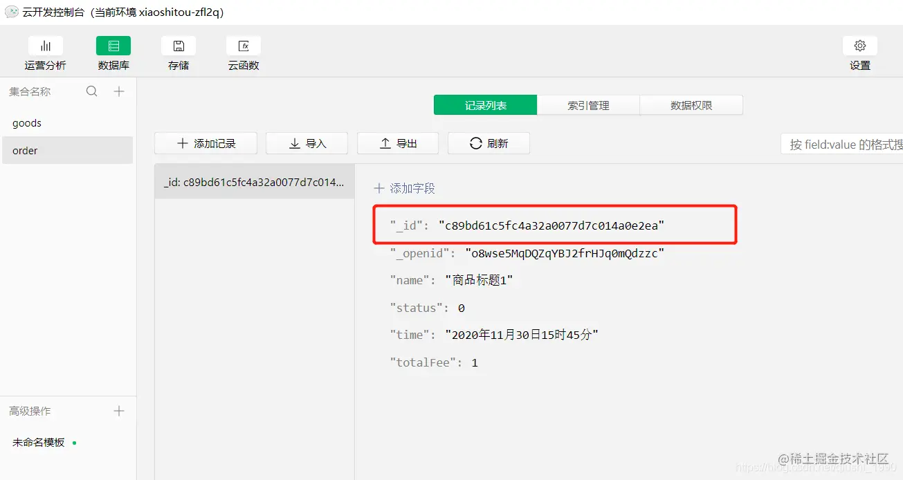 上图是我们创建订单时,返回的信息,可以看到返回信息里有一个_id字段,这个字段在我们order表里也有。