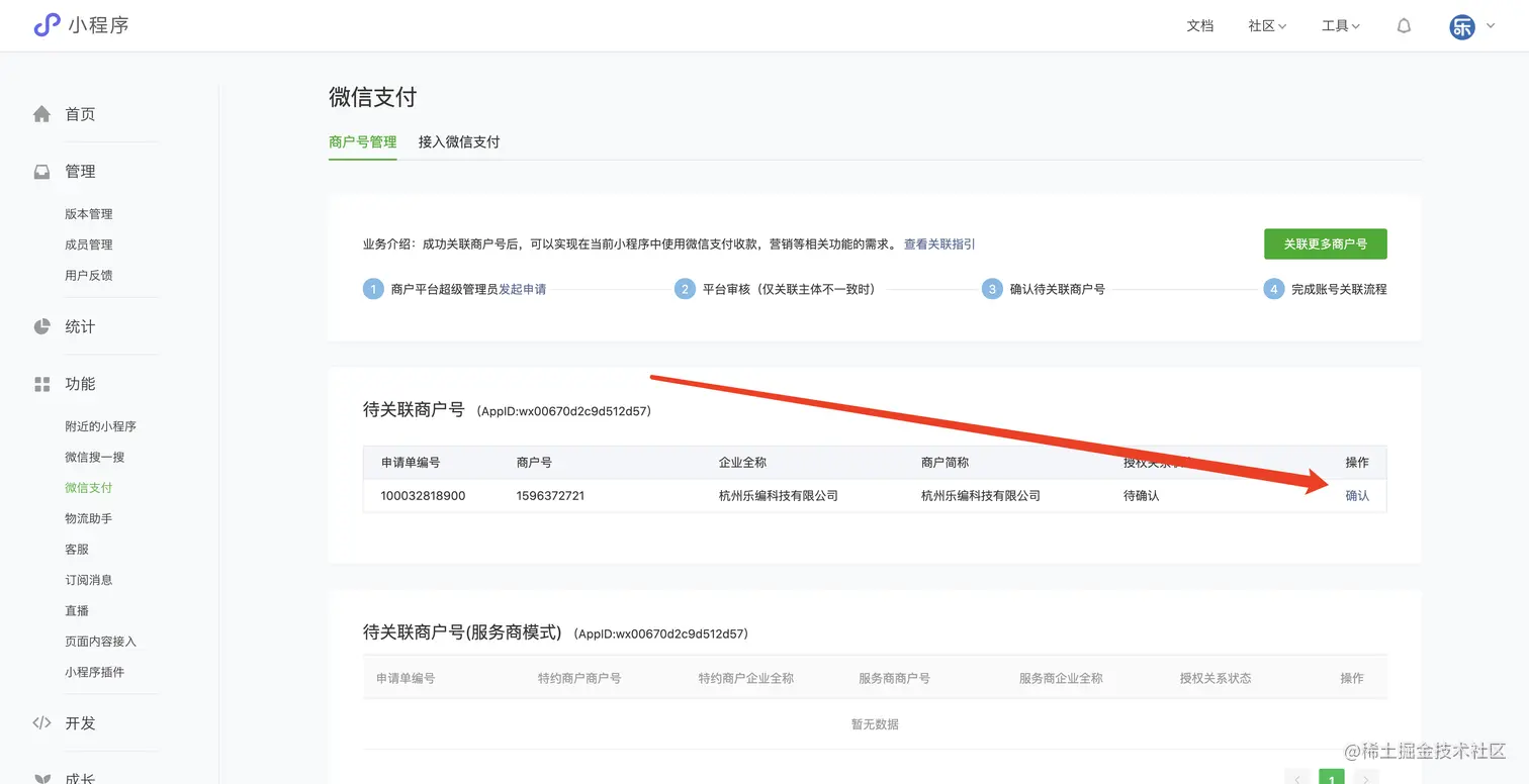 可以看到我们的小程序和微信商户号成功的关联起来了
