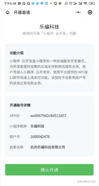 授权完成以后,我们的小程序端会出现下面这样的,点击下确认即可。