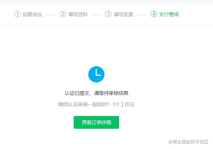耐心等待吧,认证完,我就可以关联微信支付商户号了,就可以愉快的做支付功能了。我们下一节见。