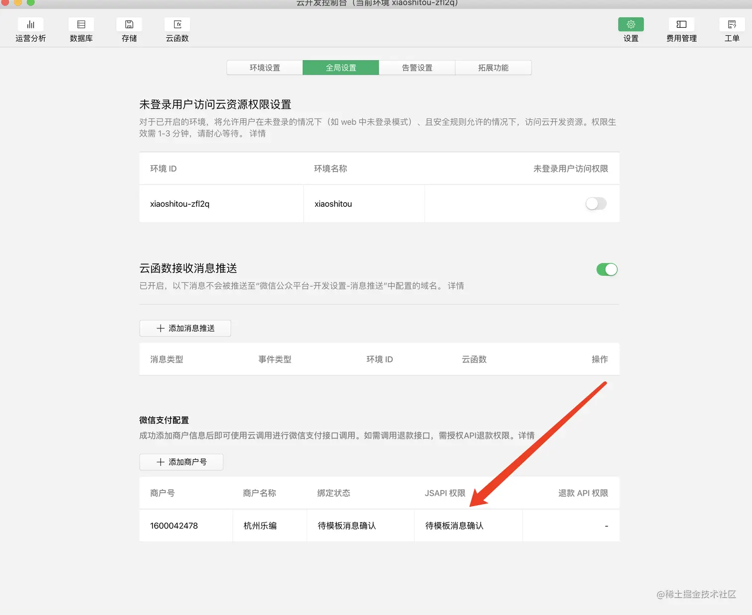 4,然后点击设置,全局配置,可以看到有个微信支付配置