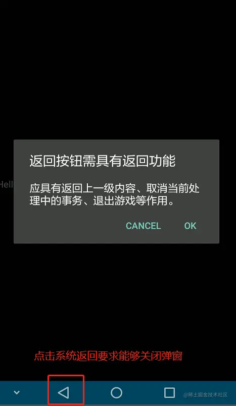 (1)在游戏启动、资源加载过程,点击系统返回按钮要求能够后退,或者弹框提示用户是否退出游戏;(部分应用在这过程屏蔽了系统按钮,出现被谷歌应用商店拒绝的情况)