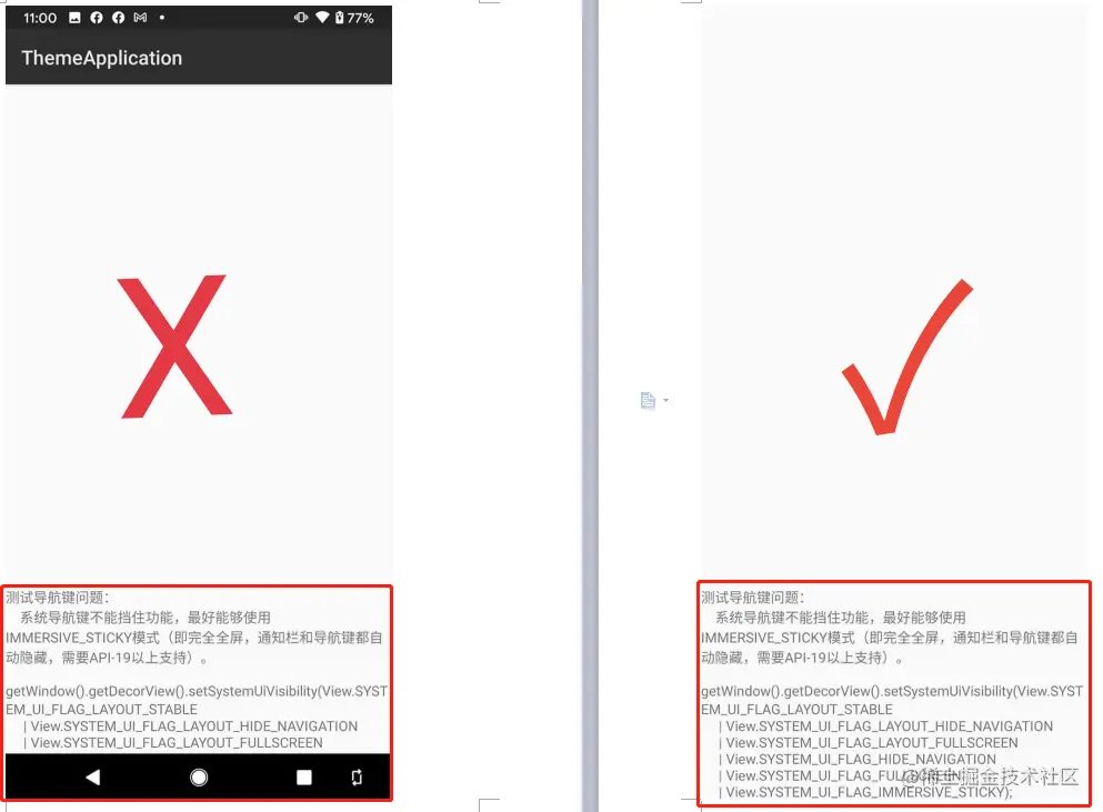 系统导航键不能挡住功能,最好能够使用IMMERSIVE_STICKY模式(即完全全屏,通知栏和导航键都自动隐藏,需要API-19以上支持)。