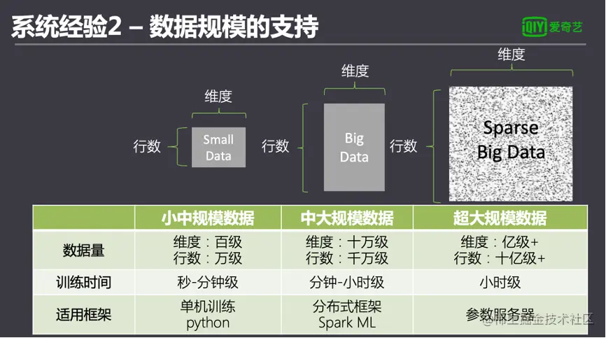 另一方面,在训练亿级以上的数据量时传统的 SparkML 训练相当慢甚至崩溃失败。这是因为 Spark 对超大规模的模型的训练并不擅长,Spark 训练模型分多轮迭代,每一轮需要所有的执行器的任务做完后才汇总参数,根据木桶原理,整个 Spark 任务会受到最慢的 worker 运行时间影响。