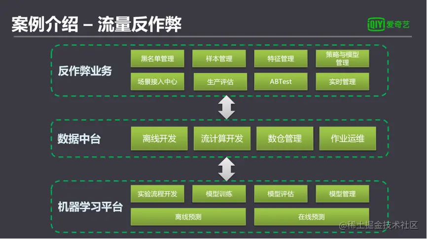 反作弊业务是一个独立的业务系统,管理反作弊相关业务逻辑和业务数据。反作弊平台定义和构建了不同反作弊识别过滤场景,并自动拆解成工作流在数据中台中具体运维。涉及到算法相关的流程,通过数据中台转到机器学习平台处理,处理后的结果也会回到数据中台。