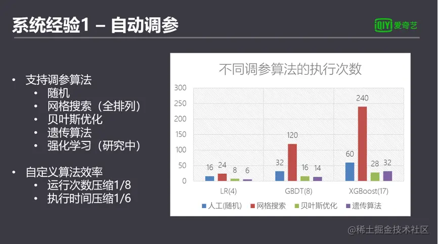 目前机器学习平台除了支持随机算法和网格搜索的算法,也实现了贝叶斯优化以及自研的遗传算法。测试发现自研的算法调参效率远优于传统默认的算法。