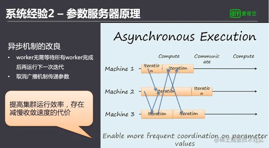 另外,所有的执行器会通过广播的方式对参数进行共享,对于大规模参数量的模型来说相当占网络带宽,也会导致系统使用率效果非常低。