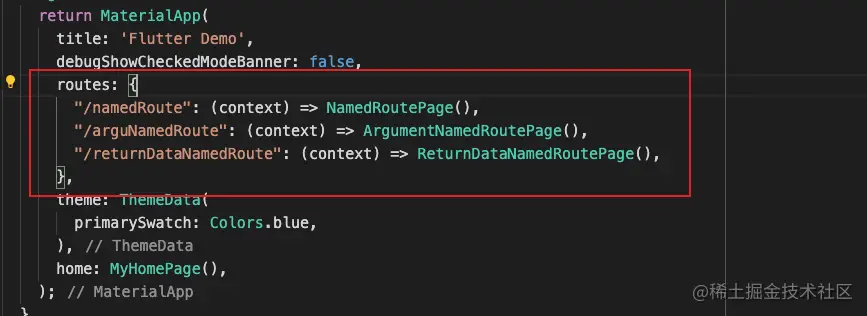(二),命名路由的导航和返回,首先我们要给MaterialApp的routes赋值,给每一个页面映射一个名字