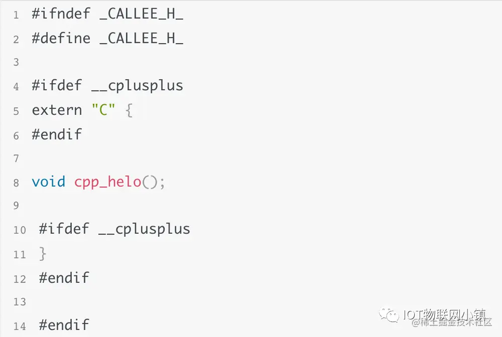 (1)caller.c在 include “callee.h" 时,gcc编译器中没有定义 __cplusplus 宏,所以 callee.h 中就相当于只有一句话:void cpp_helo();