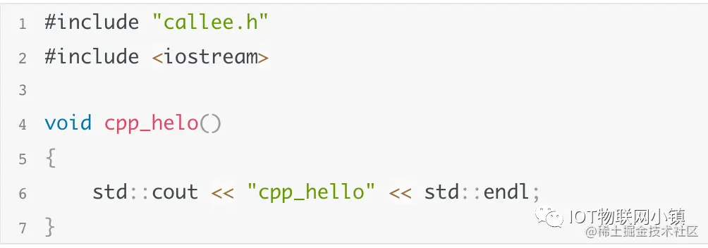 在callee.h中,把函数 cpp_hello 放在 extern "C" 中,意思就是告诉编译器g++: 这个函数是需要被C调用的,请不要对这个函数进行名字改写。