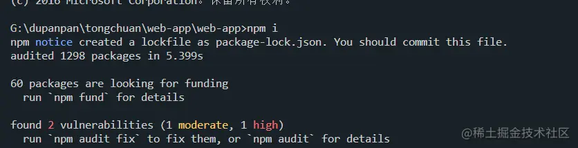 解决办法,重新切换一个cmd窗口,再npm i 即可