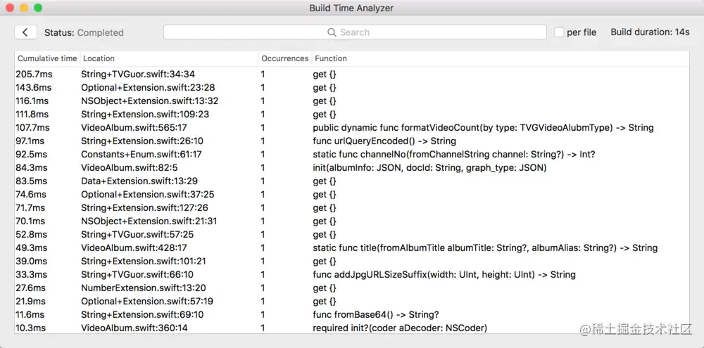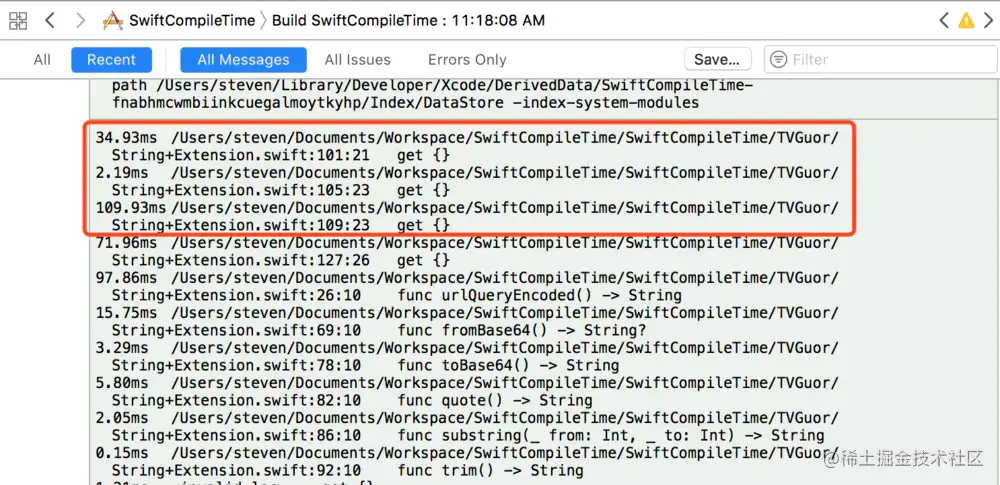 112.09ms /Users/xxx/Documents/Workspace/SwiftCompileTime/SwiftCompileTime/TVGuor/String+Extension.swift:109:23 get {}