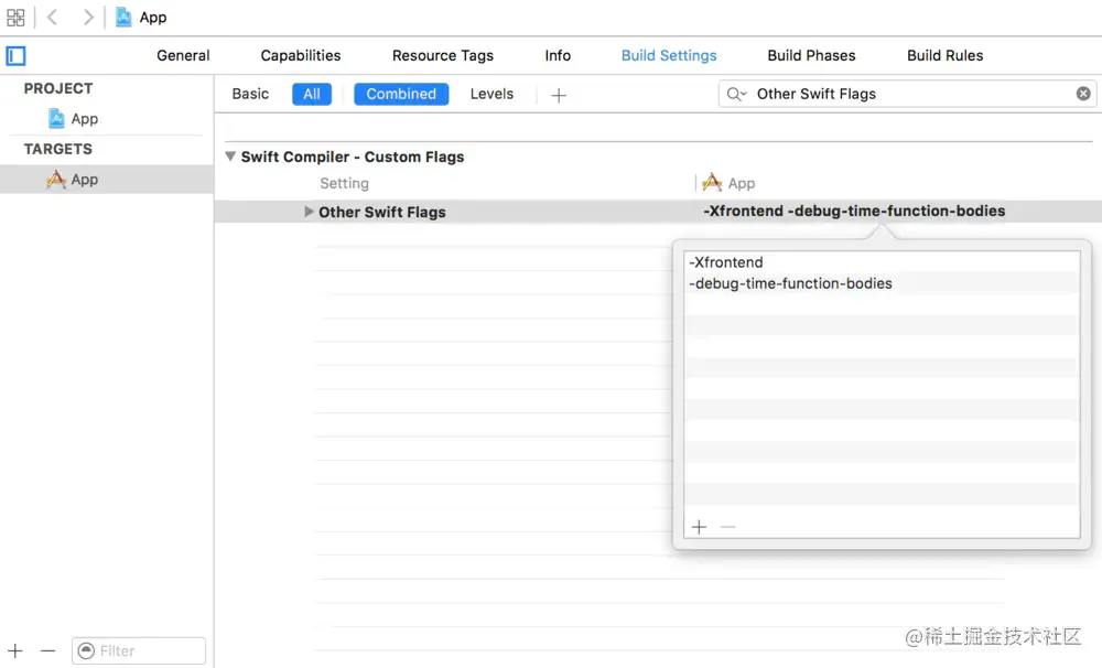按照上面的教程,在Xcode中添加”-Xfrontend -debug-time-function-bodies“的flags