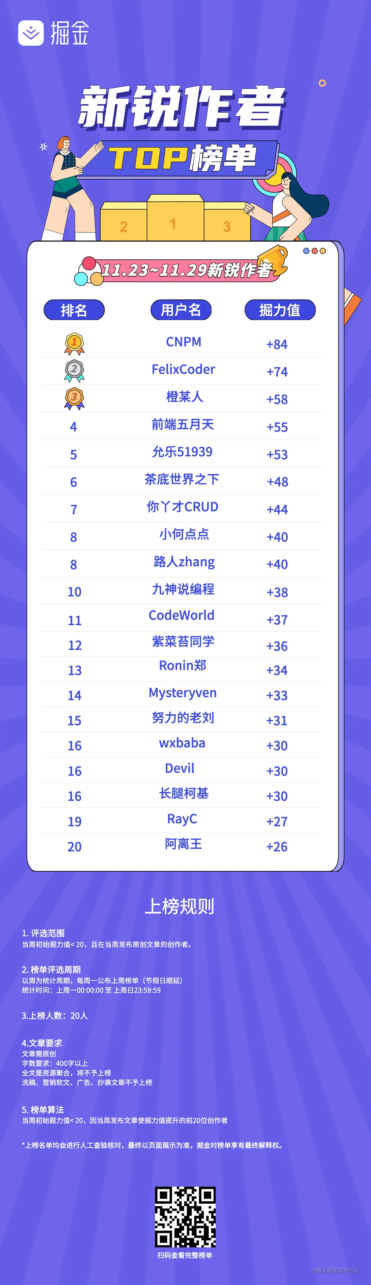 没有上榜的掘友也不要气馁哦,继续加油💪 ,期待下周榜上有你!