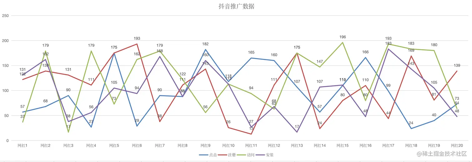 如下图:分别给了20个网红进行推广,统计他们的安装量,如后台统计是无法统计到的,只能通过邀请码来判断用户的归属。Android和iOS不统一,iOS消费数据统计不到。