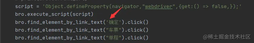 script = 'Object.defineProperty(navigator,"webdriver",{get:() => false,});' bro.execute_script(script)