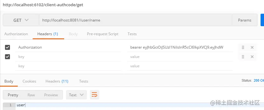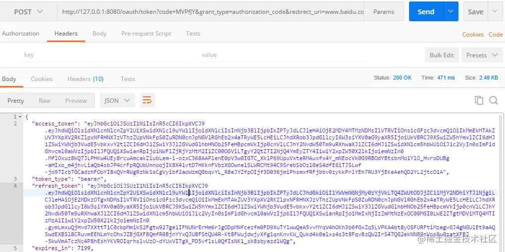 通过Postman进行请求: http://127.0.0.1:8080/oauth/token?code=MVPfJY&grant_type=authorization_code&redirect_uri=www.baidu.com&client_id=zcs&client_secret=zcs