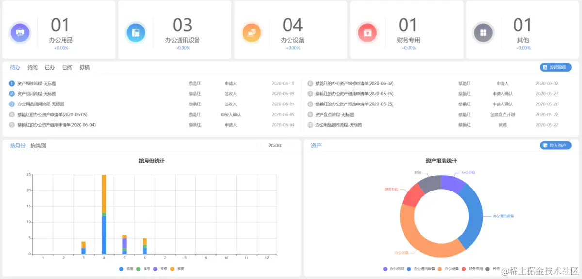 接下来我们一起看看O2OA开源免费OA办公系统下的智能资产管理: