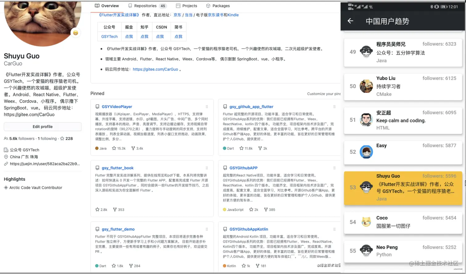 2020 年我在 Github 收获了第二个破万的项目 gsy_github_flutter_app ,同时播放器项目也突破到了 15k+ star ,个人关注数在国区也上升到了 53 名,整体上数据比去年都有所增加。