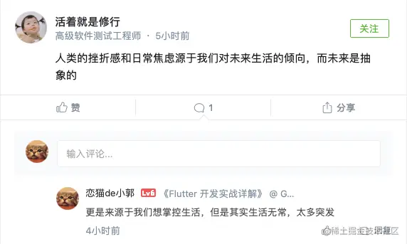 最后分享一条今天看到的沸点,我们在媒体和外界的“宣导”下,就像在为了摆脱如 “35 定律”而苦苦挣扎,各种 “要凉”、“爆发”、“再不xxx 就晚了” 让我们变得敏感而有焦躁,我们在为了“还未到的”或者“即将到的”惶惶不安。