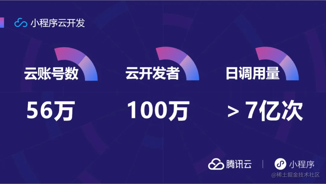 今年,准确说是昨天,腾讯云在北京举办的第二届“小程序·云开发”技术峰会上宣布,云开发的注册用户数达到56万,较去年同期增长1.5倍,服务超过100万开发者,日调用次数超过7亿。