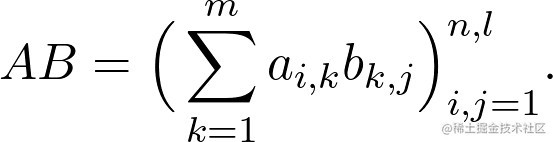 矩阵最重要的运算是矩阵乘积。通常,矩阵 A、B 以及乘积 AB 表示为:
