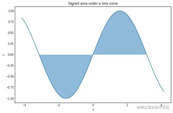 在 -π到π的区间内,正弦函数曲线下的有符号面积。