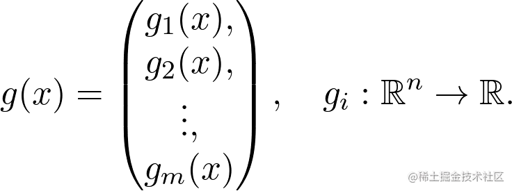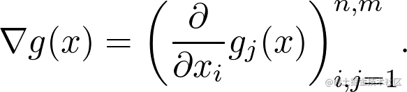 g 的梯度由矩阵定义,该矩阵的第 k 行是第 k 个分量的梯度