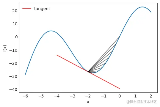 在极限定理中,这也是点 x 处切线的斜率。下图说明了这个概念: