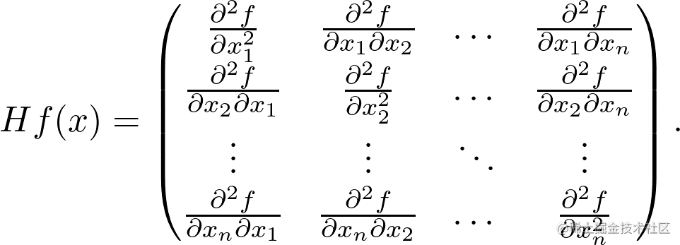 对于 n 个变量的通用可微分矢量 - 标量函数,存在 n^2 个二阶导数。形成 Hessian 矩阵。