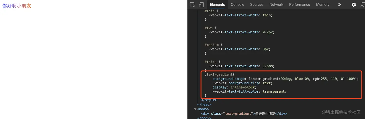 background-image它的其中一个值可以是linear-gradient。参考这里-webkit-background-clip实验中-webkit-background-clip:text;背景被裁剪成文字的前景色。参考这里-webkit-text-fill-color文字的填充颜色