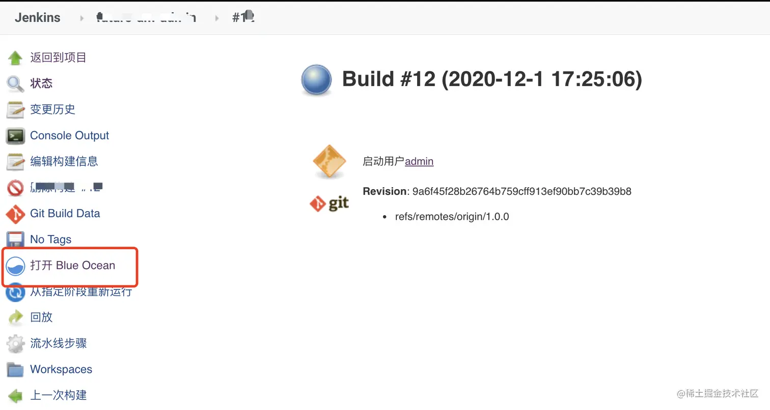 进入当前构建的详情页,--》【打开 Blue Ocean】