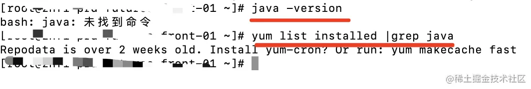 从这个命令可以看到,我们确实没有安装java环境