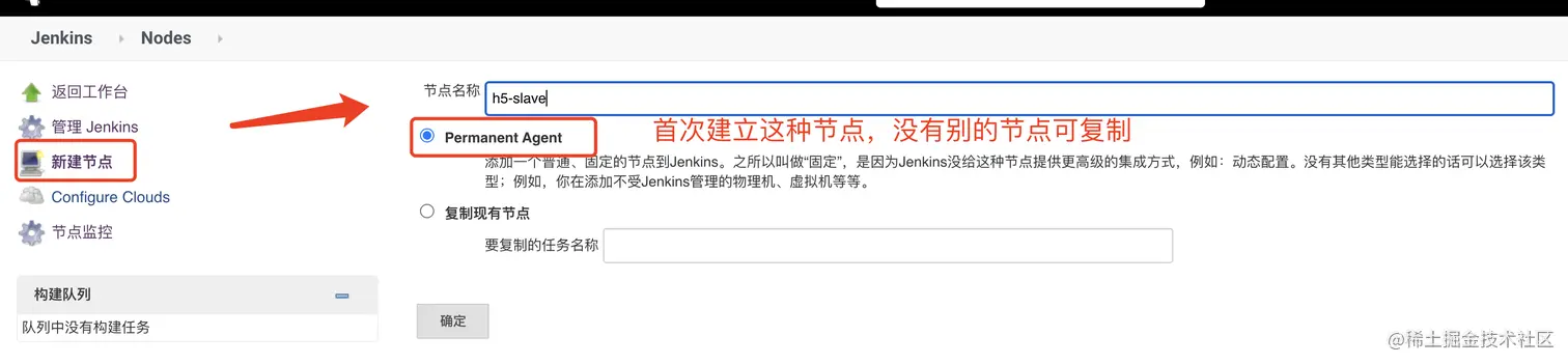 节点列表页面【新建节点】,节点命名 为 h5-slave,与配置填写。