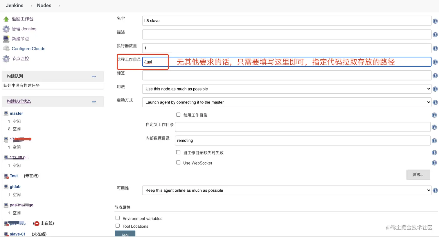 节点,简单来说就是一个拉取你的最新代码执行打包构建的服务器。