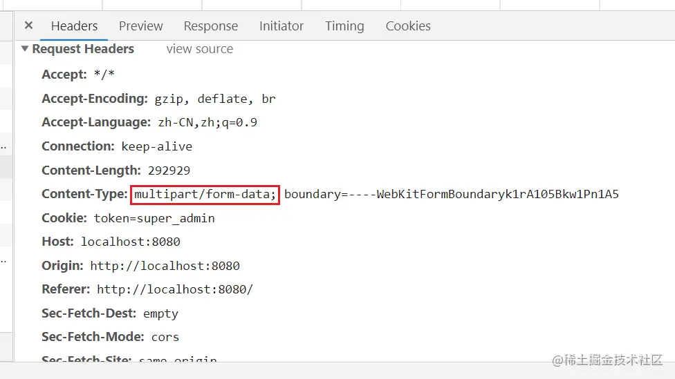 最重要的事 请求头一定要配置为 multipart/form-data' 如下例: 一个请求可以配置多个请求头,自动调用. axios.defaults.headers.post['Content-type'] = 'multipart/form-data' axios.defaults.headers.post['Content-Type'] = 'application/json'