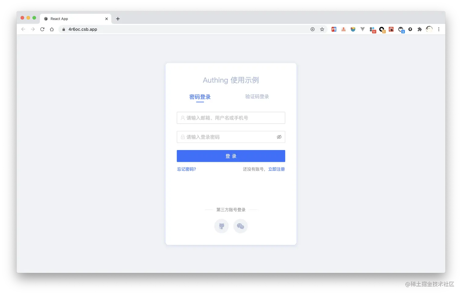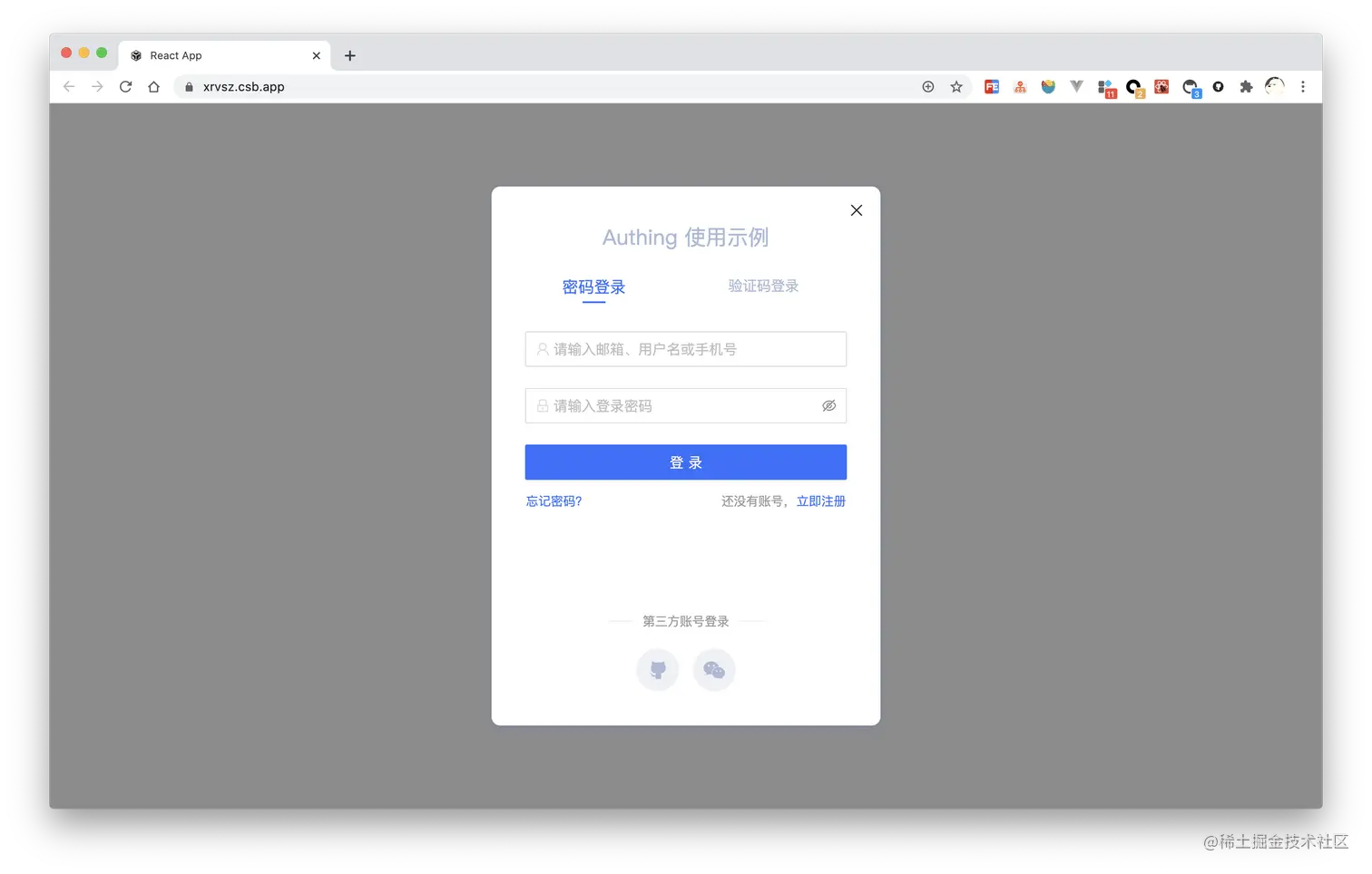AuthingGuard是一种可嵌入的登录表单,可根据你的需求进行配置,它使你可以轻松添加各种社会化登录方式,以便你的用户可以无缝登录,并且在不同平台拥有一致的登录体验。