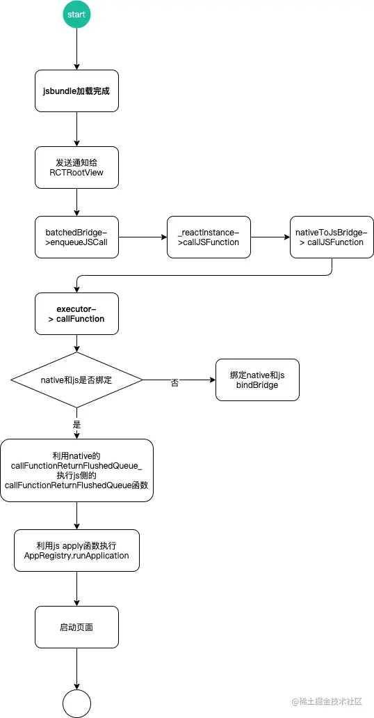 batchedBridge->enqueueJSCall去执行AppRegistry.runApplication函数;启动 RN 页面。 -