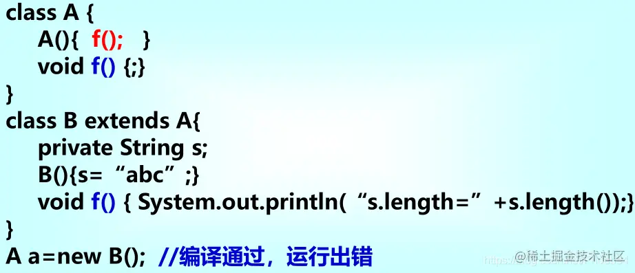 - 构造对象时,会自动调用该类与超类的构造函 数,调用次序与派生次序相同