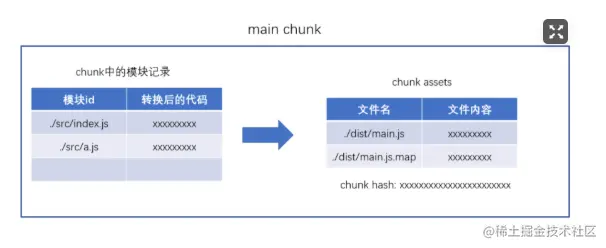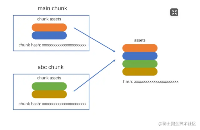 将多个chunk的assets合并到一起,并产生一个总的资源列表和hash