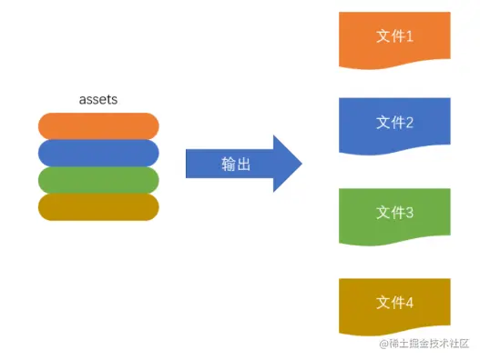 - 此步骤非常简单,webpack利用node中的(文件处理模块),根据编译产生的总的assets,生成相应的文件