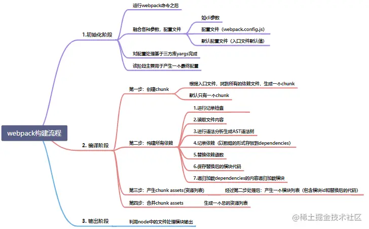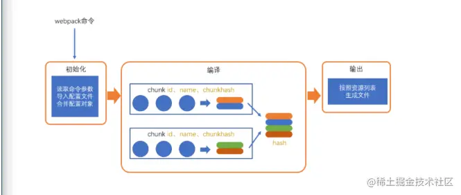 - 第二步完成后,chunk中会产生一个模块列表,列表中包含了木块id和转化后的代码。接下来webpack会根据配置的chunk生成一个chunk assets,也就是资源列表,即最终形成的文件,包含文件名和文件内容。