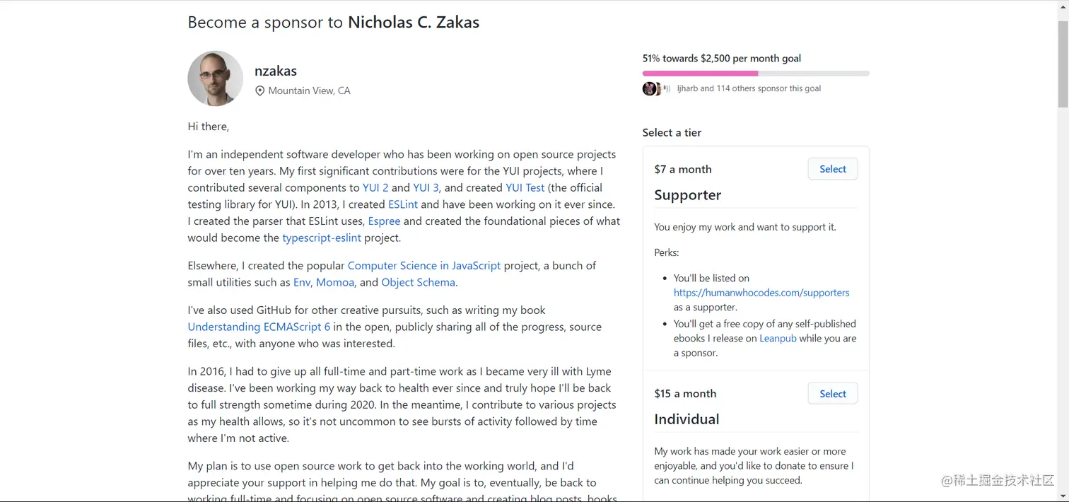 原文章地址:eslint的作者Nicholas C. Zakas寻求赞助 - 知乎 (zhihu.com)