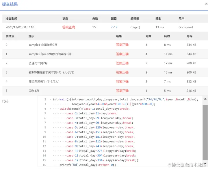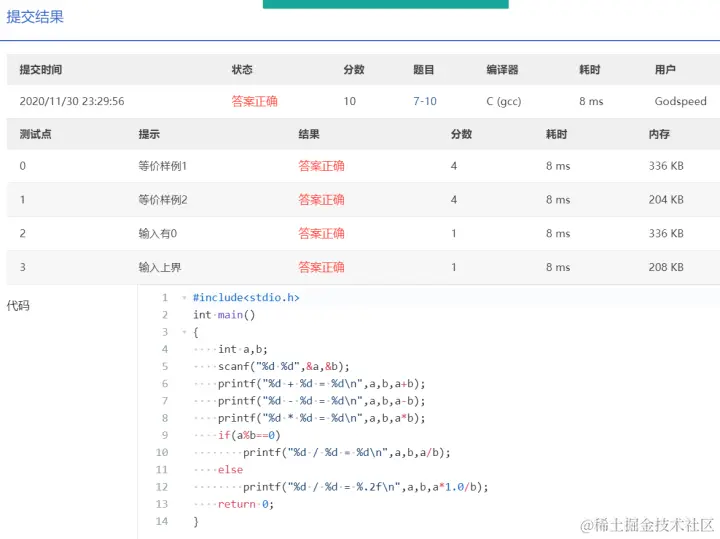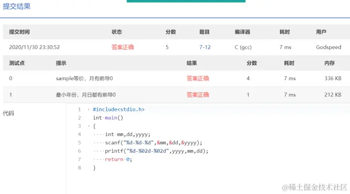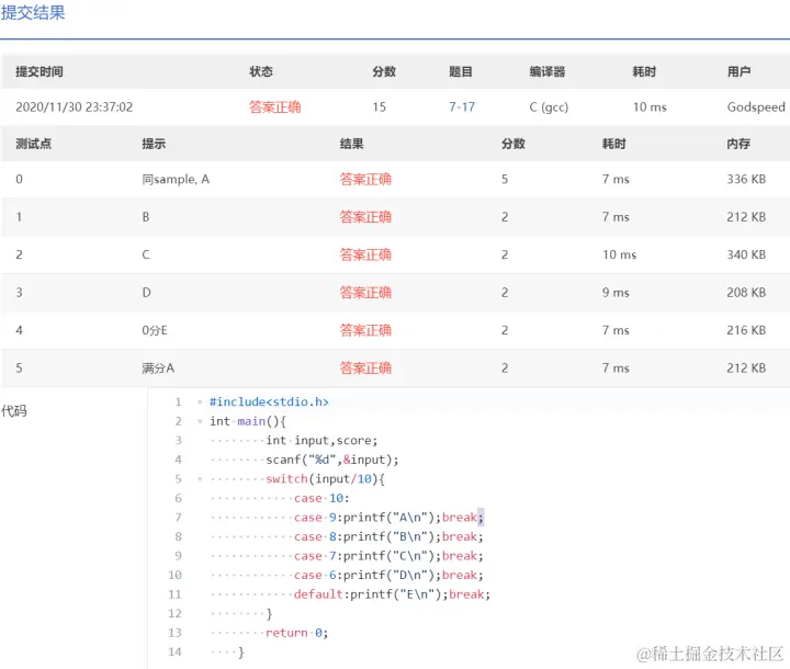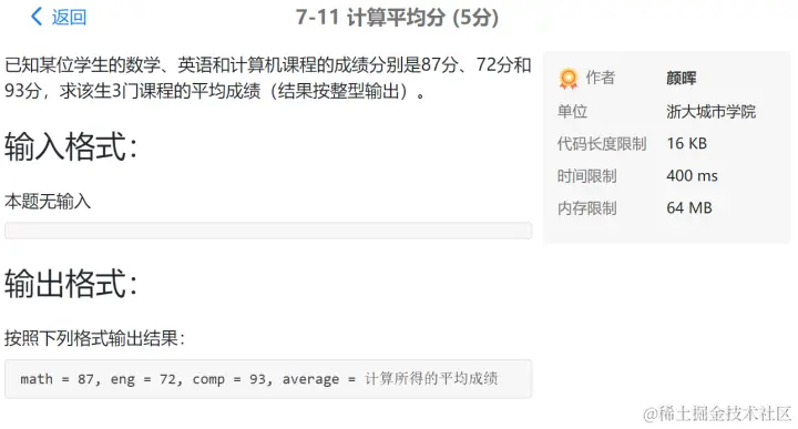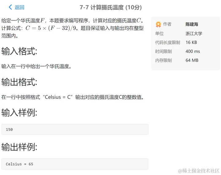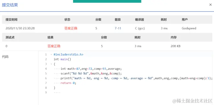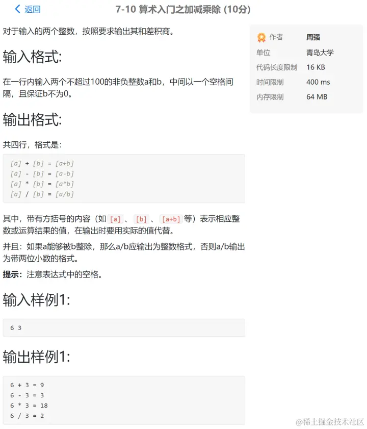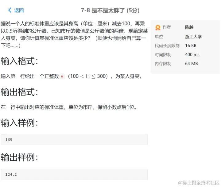 PTA第I段编程题 GodspeedLeslie 2020-12-01 177 阅读1分钟 7-1 重要的话说三遍 使用一个for循环 7-2 I Love GPLT 此处使用了转义序列\n换行 7-3 输出带框文字 7-4 输出菱形图案 7-5 输出倒三角图案 7-6 厘米换算英尺英寸