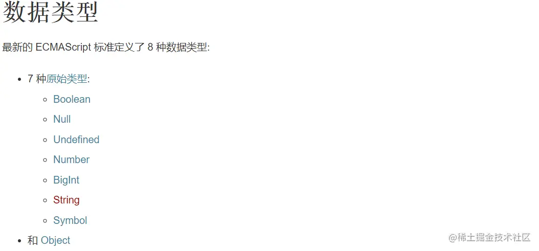 首先,最新的 ECMAScript 标准定义了 8 种数据类型: