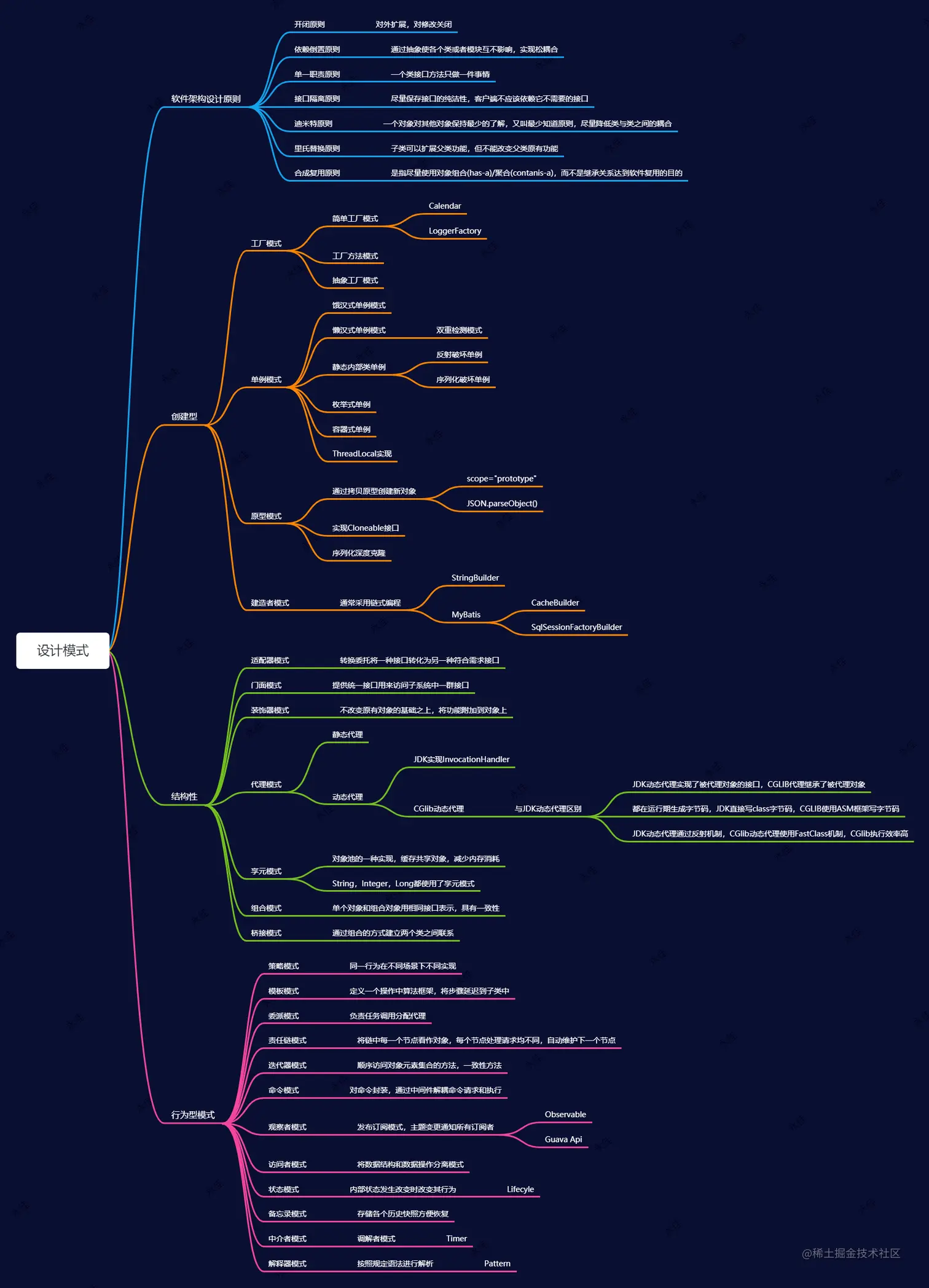 - 行为型:解释器模式(Interpreter)、模板方法模式(Template Method)、责任链模式(Chain of Responsibility) 命令模式(Command)、迭代器模式(Iterator)、调解者模式(Mediator)、备忘录模式(Memento) 观察者模式(Observer)、状态模式(State)、策略模式(Strategy)、访问者模式(Visitor)