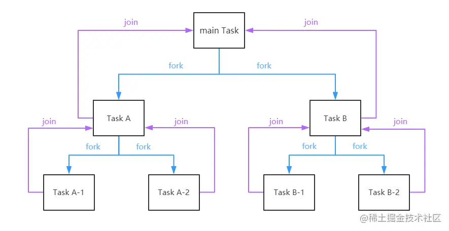 分治算法(Divide-and-Conquer)把任务递归的拆分为各个子任务,这样可以更好的利用系统资源,尽可能的使用所有可用的计算能力来提升应用性能。首先看一下 Fork/Join 框架的任务运行机制: